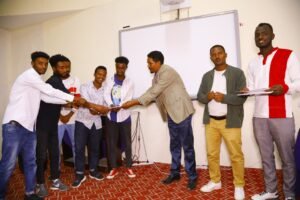 The director of the University of Gondar’s Deliveryology Unit, Dr. Aragau Eshete, Mr. Daniel Tadesse, the coordinator of the university’s Nurture Project, audience members, and judges from the technology and innovation sectors took part in the event.
